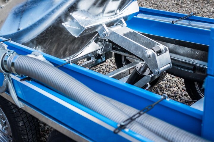 - hydraulische Hinterkippung mit ca. 20° zur Entleerung mittels Elektrohydraulik-Aggregat